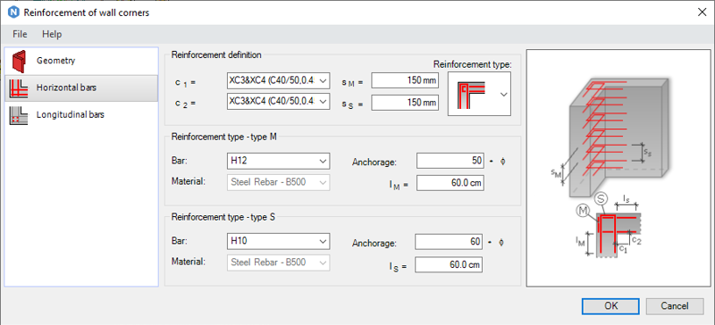 Generate reinforcement of wall corners as defined in a Revit model. You can generate reinforcement for the following types of wall corners: wall corners, connection of walls, and intersection of two walls.