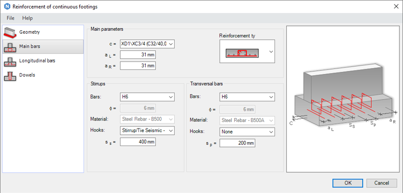 Generate reinforcement for a continuous footing in a Revit model. Reinforcement can be generated for Rectangular and Trapezoidal footing cross-sections.