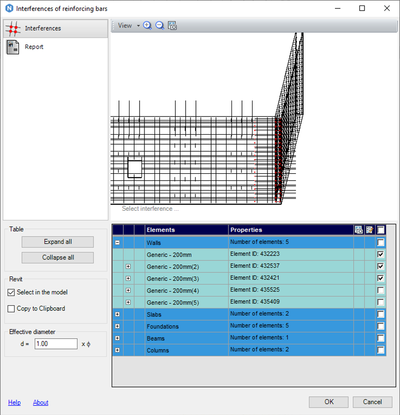 Examine specific elements in your Revit model for rebar interference. If no elements are selected before activating the module, it will analyze rebar interference across the entire structure model.
