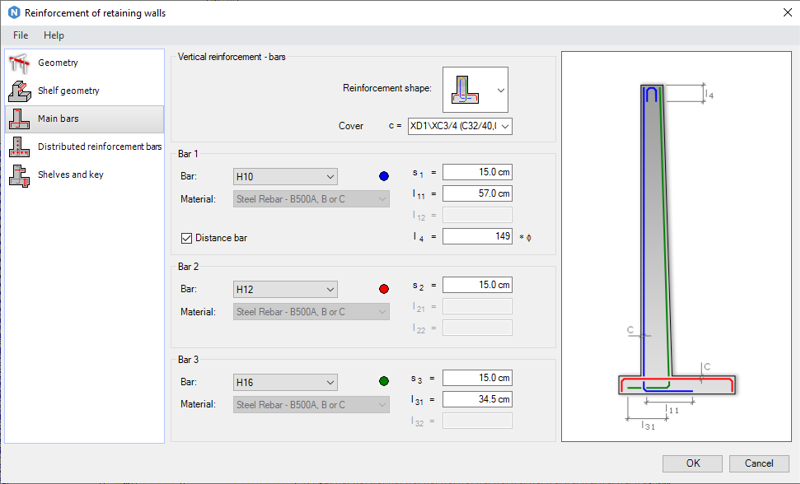 Create reinforcements for retaining walls within a Revit model. Design the foundations to mirror the form of a standard retaining wall, and also for foundations under walls of various shapes, integrating both wall and foundation elements.