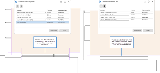 2 Enhanced placement of Area Boundary Lines on Curtain Walls to create more accurate Areas.