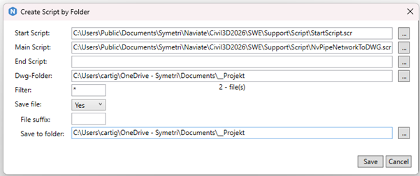 Script Call by Folder is a method to run script on multiple drawings. The command will create a complete script from any base script with optional start and/or end script with a selected folder of drawings. The files can be only opened, overwritten or saved with a suffix or to a new folder.