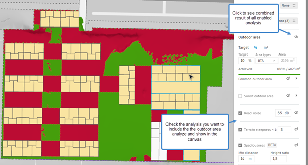 It is now possible to analyze the size of coherent parts of the outdoor area that can be used for common activities.