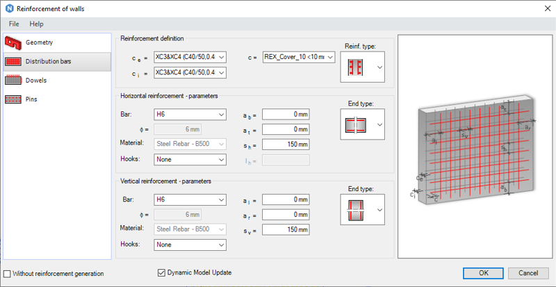 Generate reinforcement of a wall in a Revit model.