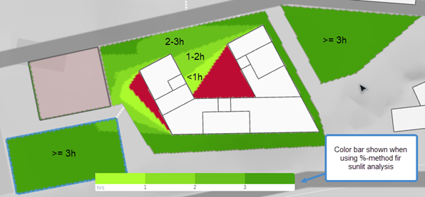 We have added a color bar showing the number of hours which each part of the outdoor area is sunlit when using the %-method for Sunlit analysis.