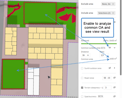 It is now possible to analyze the size of coherent parts of the outdoor area that can be used for common activities.