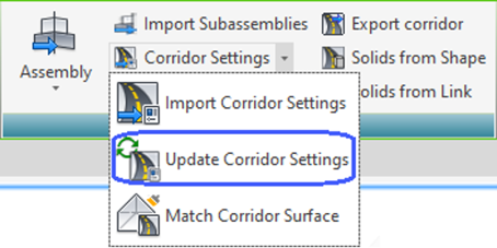 Update corridor settings saved on corridor or default settings from XML-file. This command is scriptable.