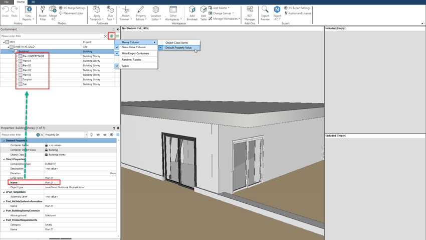 Allows setting the default property used for object classes in Naviate Simple BIM menu. Previously, it has only been possible to set the default property manually in the properties palette.