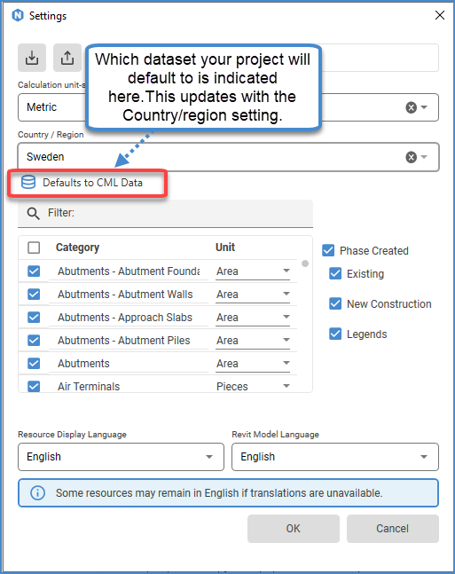 Projects now automatically defaults to TRACI or CML data sets, depending on the project location. This will affect the filtering of resources inside of Apply resources.